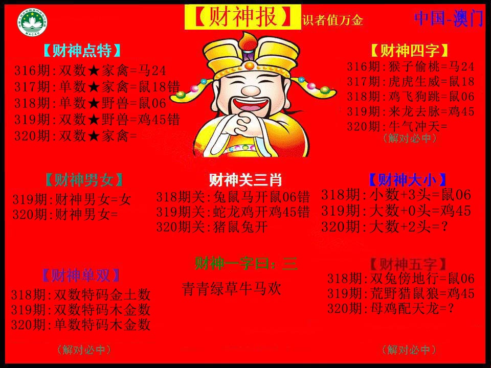 320期:九肖【精.准.稳17点前更新】开: ?00准