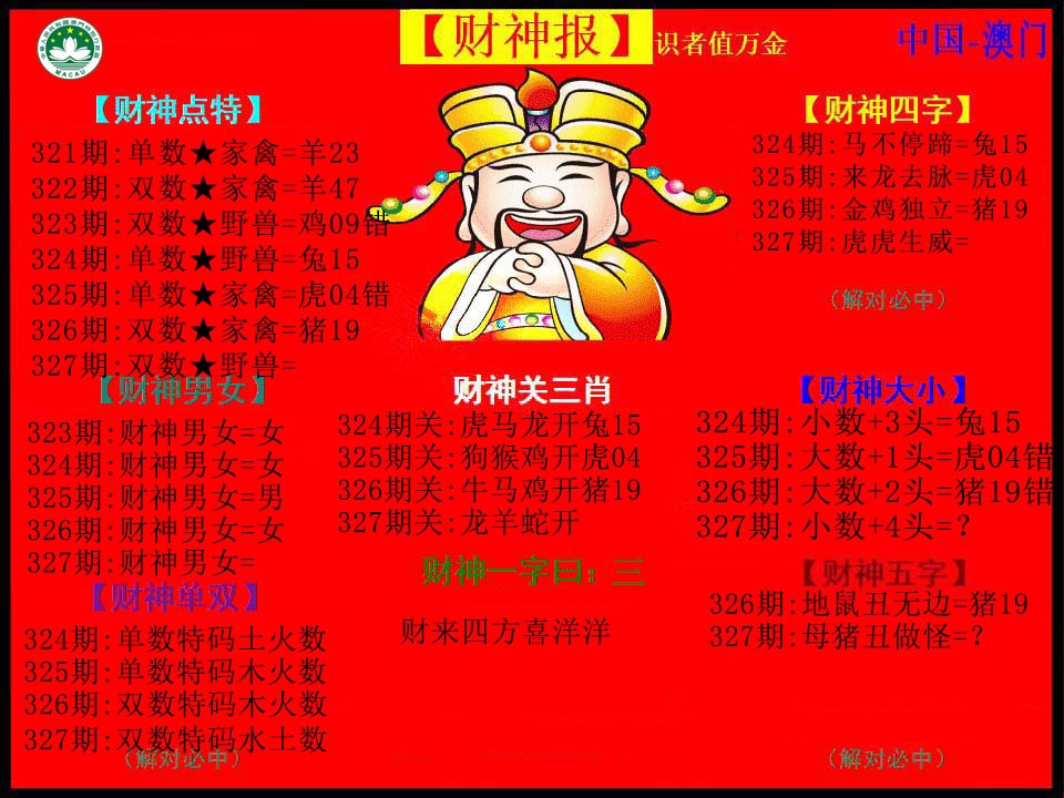 327期:澳门四肖【精选:鼠猴牛马】开: ?00准